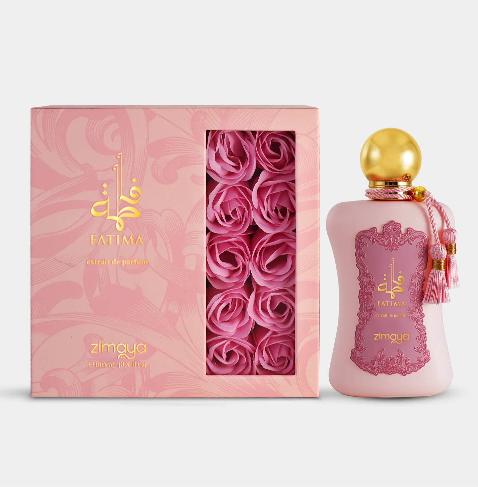Fatima Pink - A modern floral bouquet, this fragrance is highly nuanced with both sweet and sensual scent notes. This perfume relishes in its floral accords, which are dominated by rose and jasmine blended with rhubarb, bergamot, and nutmeg. Vanilla accentuates the sensuality of the composition at the base along with musk, ambergris, and vetiver.