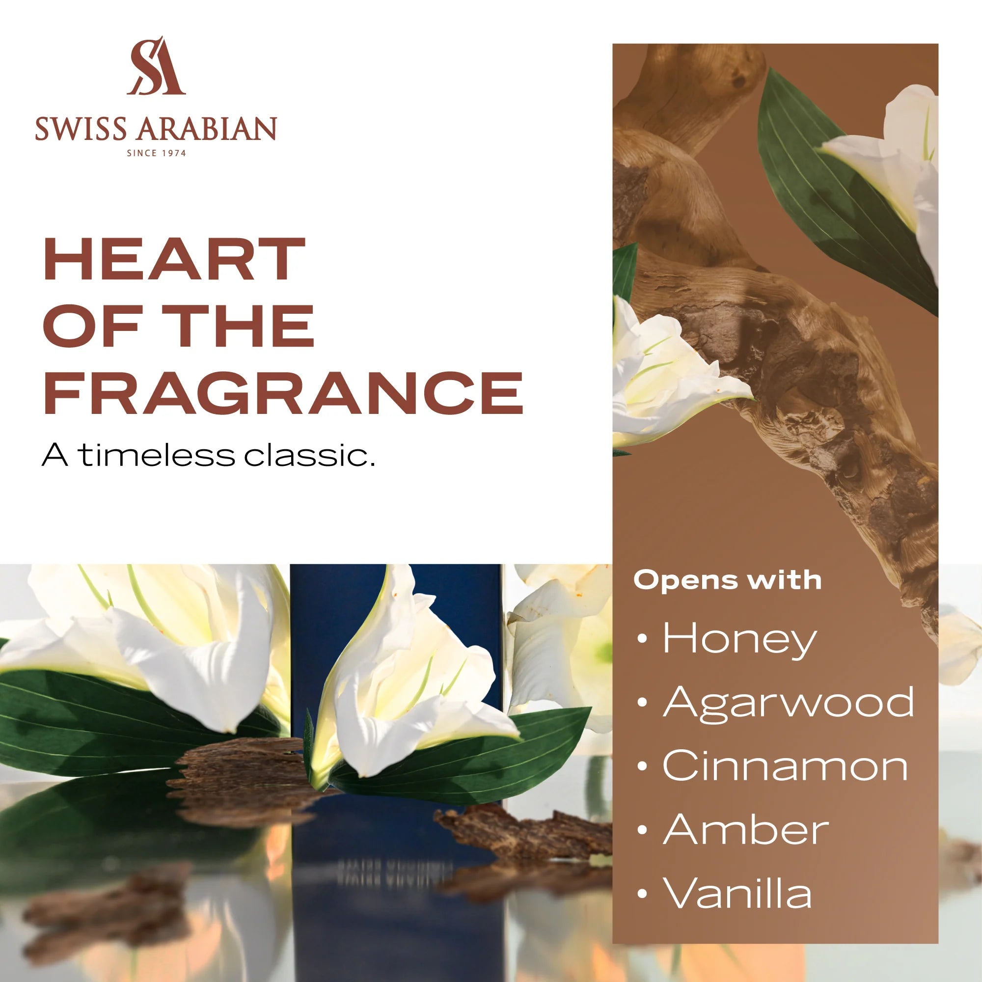 The scent opens with a rich sweetness of golden honey infused with precious agarwood, creating an opulent and confident introduction. At the heart, a warm blend of cinnamon and amber pulses with depth and passion, softened by the smooth indulgence of Madagascar vanilla that adds a creamy, sensual glow.